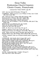 Great Valley Presbyterian Church Cemetery Chester County, Pennsylvania
