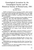 Genealogical Accessions by the Genealogical Society and the Historical Society of Pennsylvania, 1981