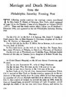 Marriage and Death Notices from the Philadelphia Saturday Evening Post