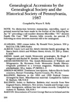 Genealogical Accessions by the Genealogical Society and the Historical Society of Pennsylvania, 1987