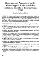 Genealogical Accessions by the Genealogical Society and the Historical Society of Pennsylvania, 1990
