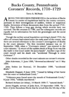 Bucks County, Pennsylvania Coroners' Records, 1710-1729