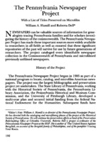 The Pennsylvania Newspaper Project With a List of Titles Preserved on Microfilm