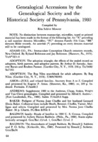 Genealogical Accessions by the Genealogical Society and the Historical Society of Pennsylvania