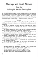Marriage and Death Notices from the Philadelphia Saturday Evening Post