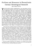 Problems and Resources in Pennsylvania German Genealogical Research