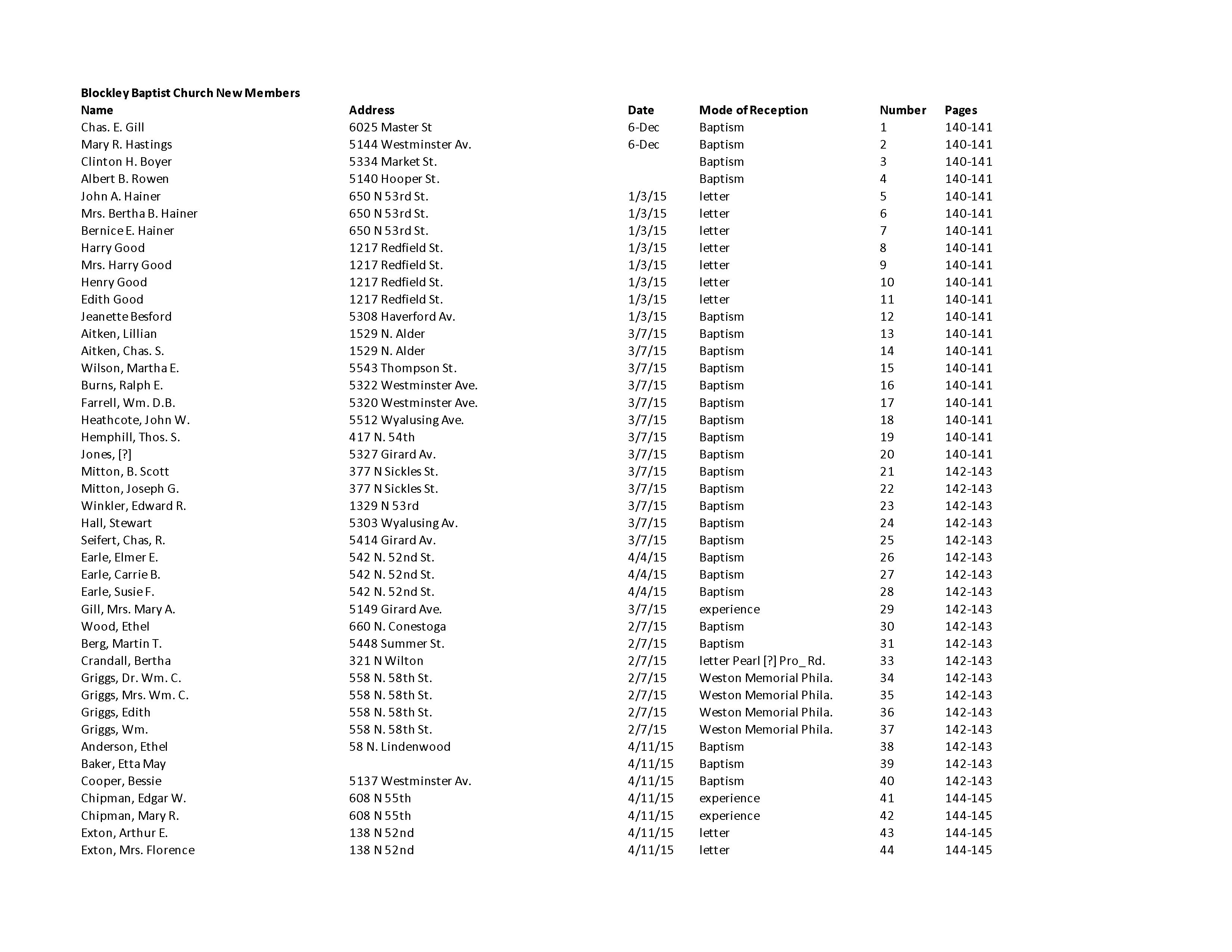 The pastor who compiled the records was the Rev. Dr. John A. Hainer, He was the only minister at Blockley from 1914 into the approximately the 40's.